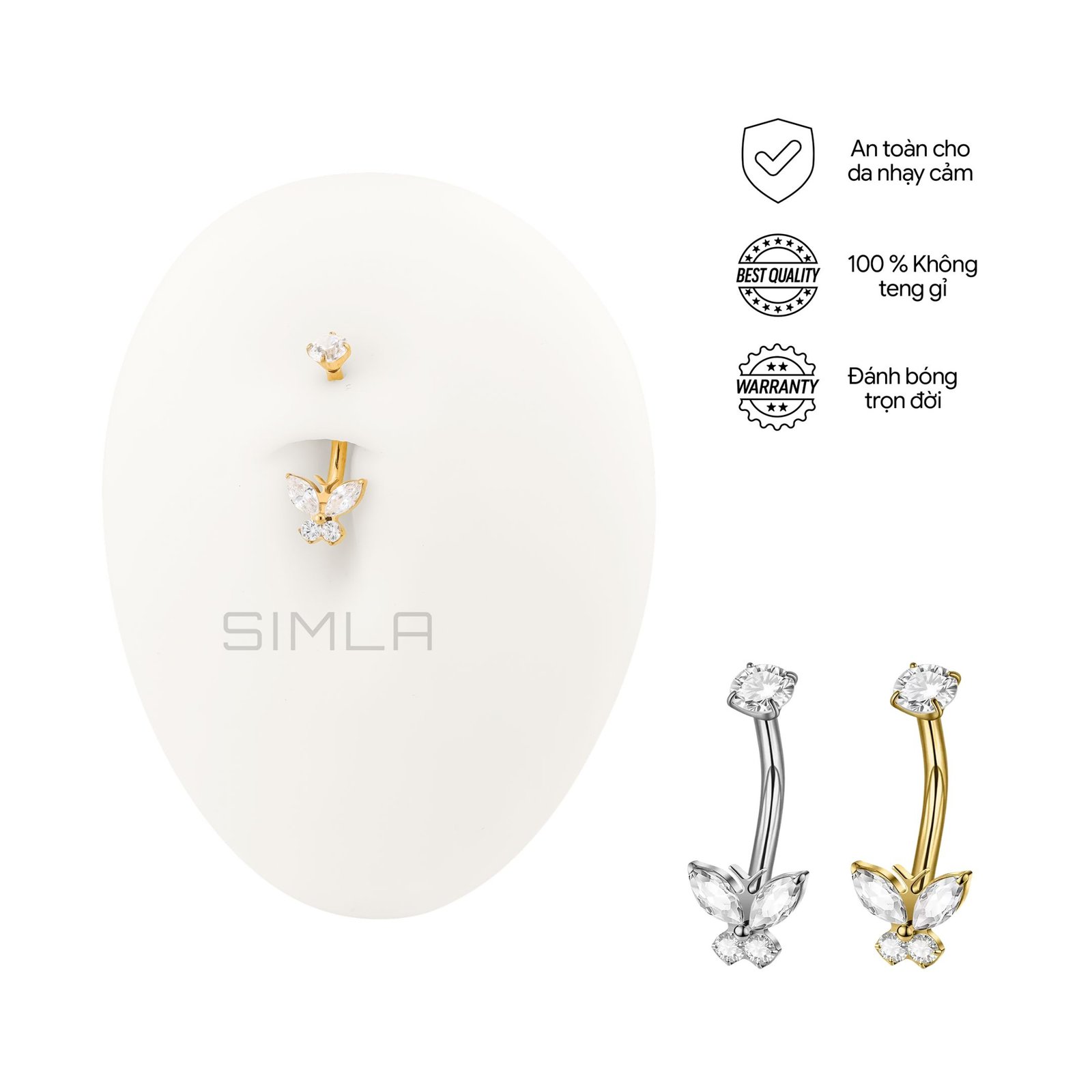 KHUYÊN RỐN BƯỚM ĐÁ TITANIUM G23, KHÔNG XỈN MÀU AN TOÀN CHO DA