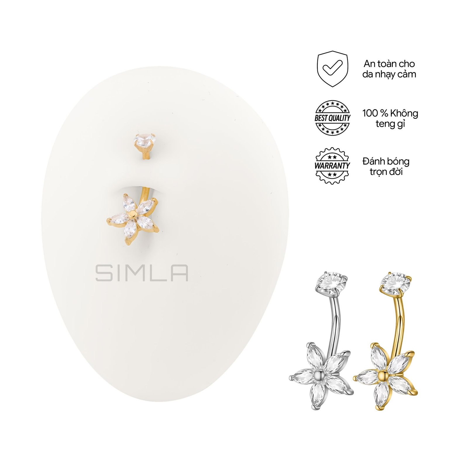 KHUYÊN RỐN HOA ĐÁ TITANIUM G23, KHÔNG XỈN MÀU AN TOÀN CHO DA